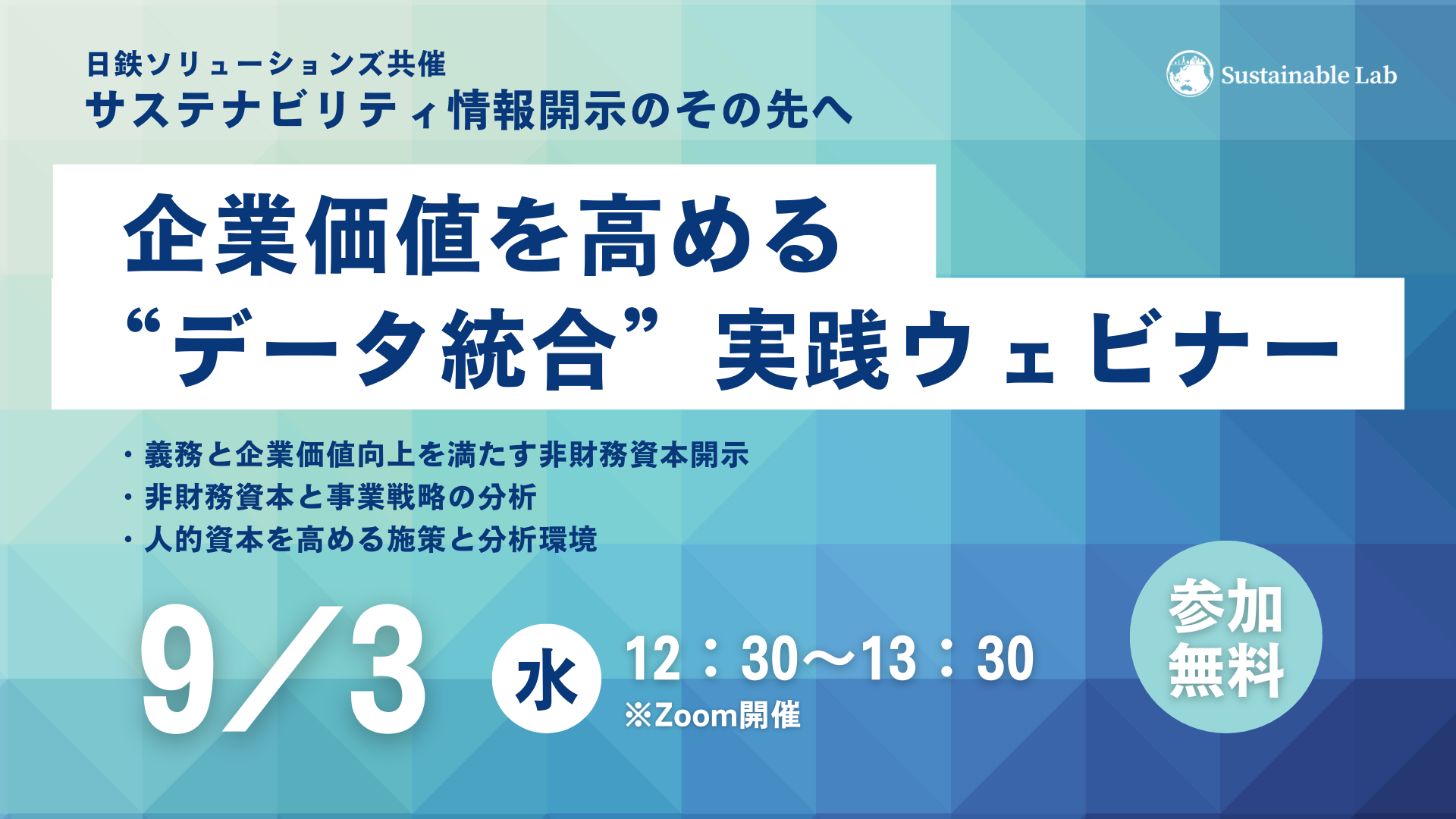 9/3開催「サステナビリティ情報開示のその先へ:企業価値を高める“データ統合”実践ウェビナー」