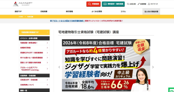 1位:宅建試験の一発合格率が高い!「アガルート」